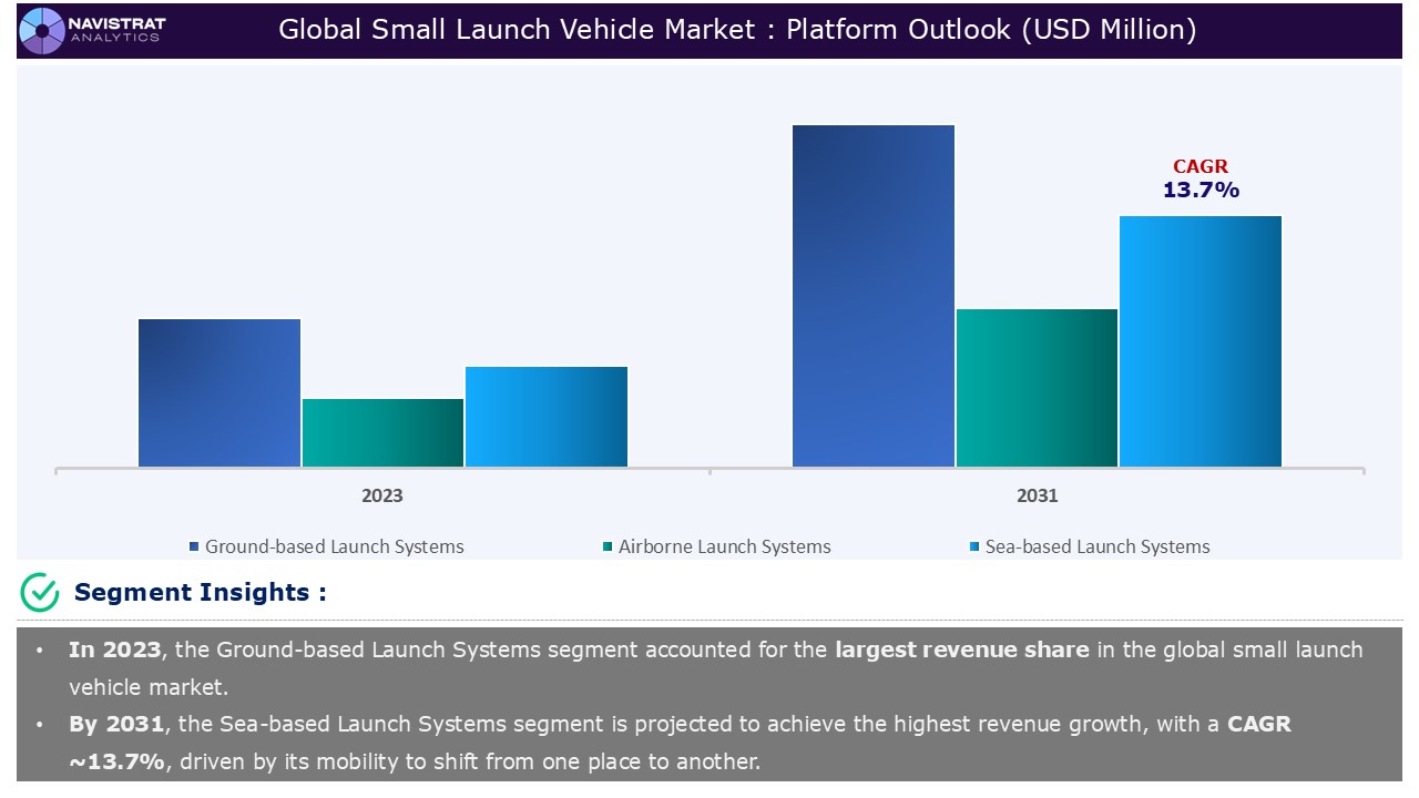 Based on the platform, the small launch vehicle market is segmented into ground-based launch systems, airborne launch systems, and sea-based launch systems.