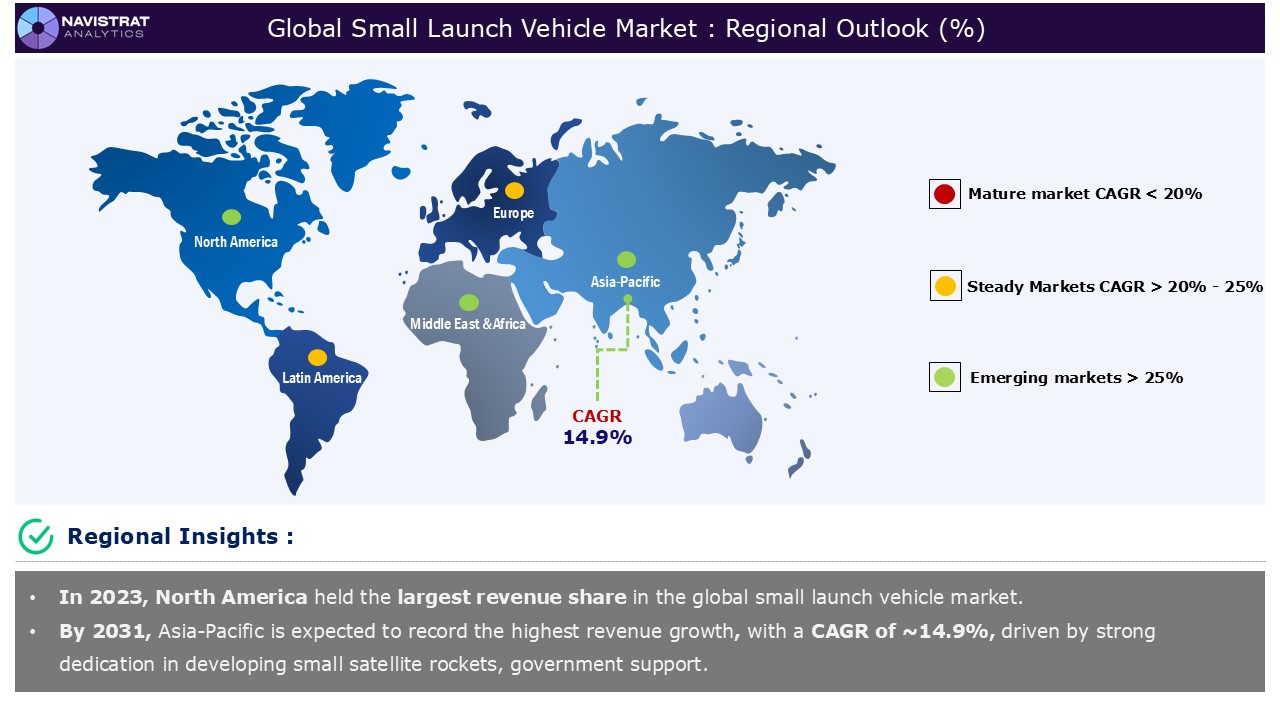 North America is registered highest market share in Small Launch Vehicle market in 2023. The regional market is driven by increasing space budget, internet usage, and weather monitoring for commercial applications. On March 2024, the Biden-Harris Administration has issued the President’s Budget of USD 30 billion for Fiscal Year 2025, which contains resources to invest in America and the American people, as well as financing for NASA to continue improving our understanding of Earth and space while inspiring the world through discovery. The budget allocates USD 2.4 billion to the Earth science program for missions and programs that enhance Earth system science and increase access to information to prevent natural hazards, promote climate action, and manage natural resources.